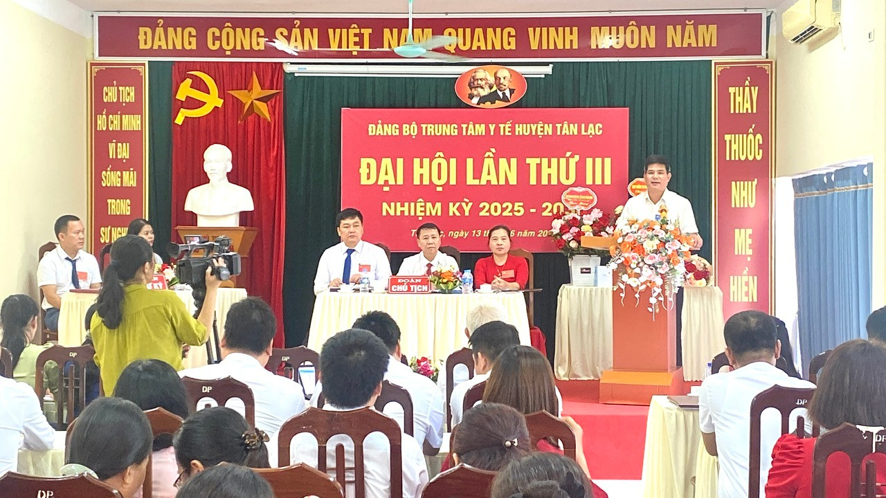 Ngày 13/6/2025, Đảng bộ Trung tâm Y tế Tân Lạc tổ chức Đại hội Đảng bộ lần thứ III, nhiệm kỳ 2025 - 2030.