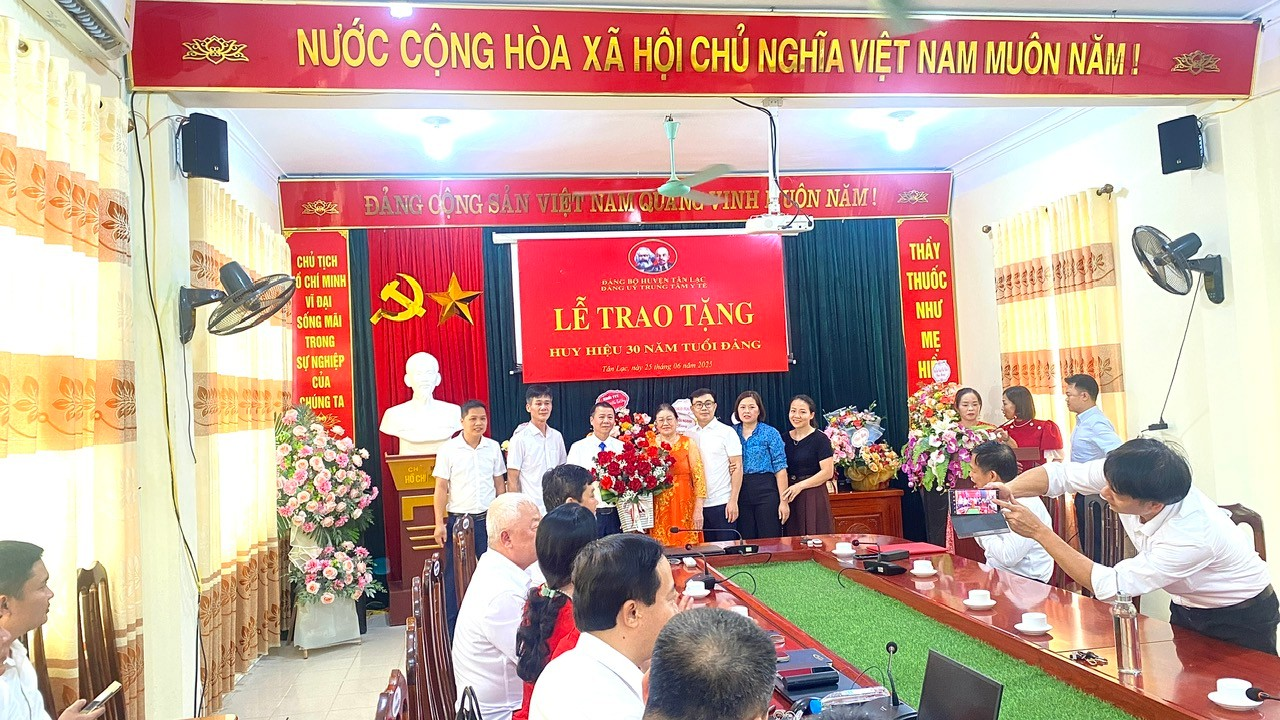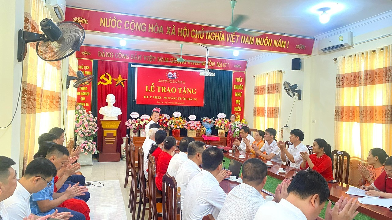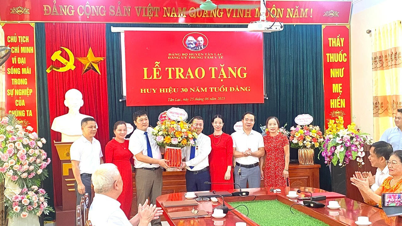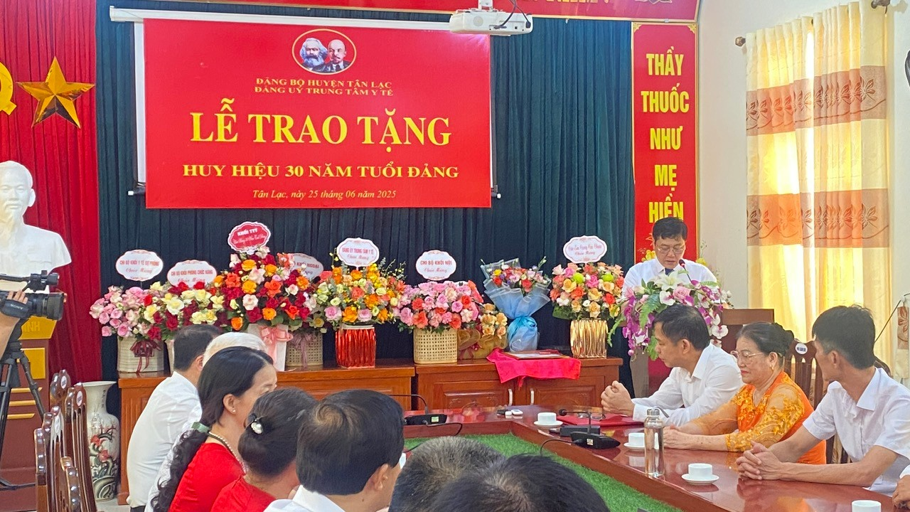 Chiều ngày 25/6/2025, Đảng bộ Trung tâm Y tế Tân Lạc long trọng tổ chức Lễ trao tặng Huy hiệu 30 năm tuổi Đảng cho đồng chí Trần Quốc Mạnh - Bí thư Đảng ủy, Giám đốc Trung tâm Y tế. Đây là sự kiện có ý nghĩa chính trị sâu sắc, thể hiện sự trân trọng, ghi nhận của Đảng đối với quá trình phấn đấu, rèn luyện, cống hiến bền bỉ của người đảng viên ưu tú trong suốt 30 năm qua.