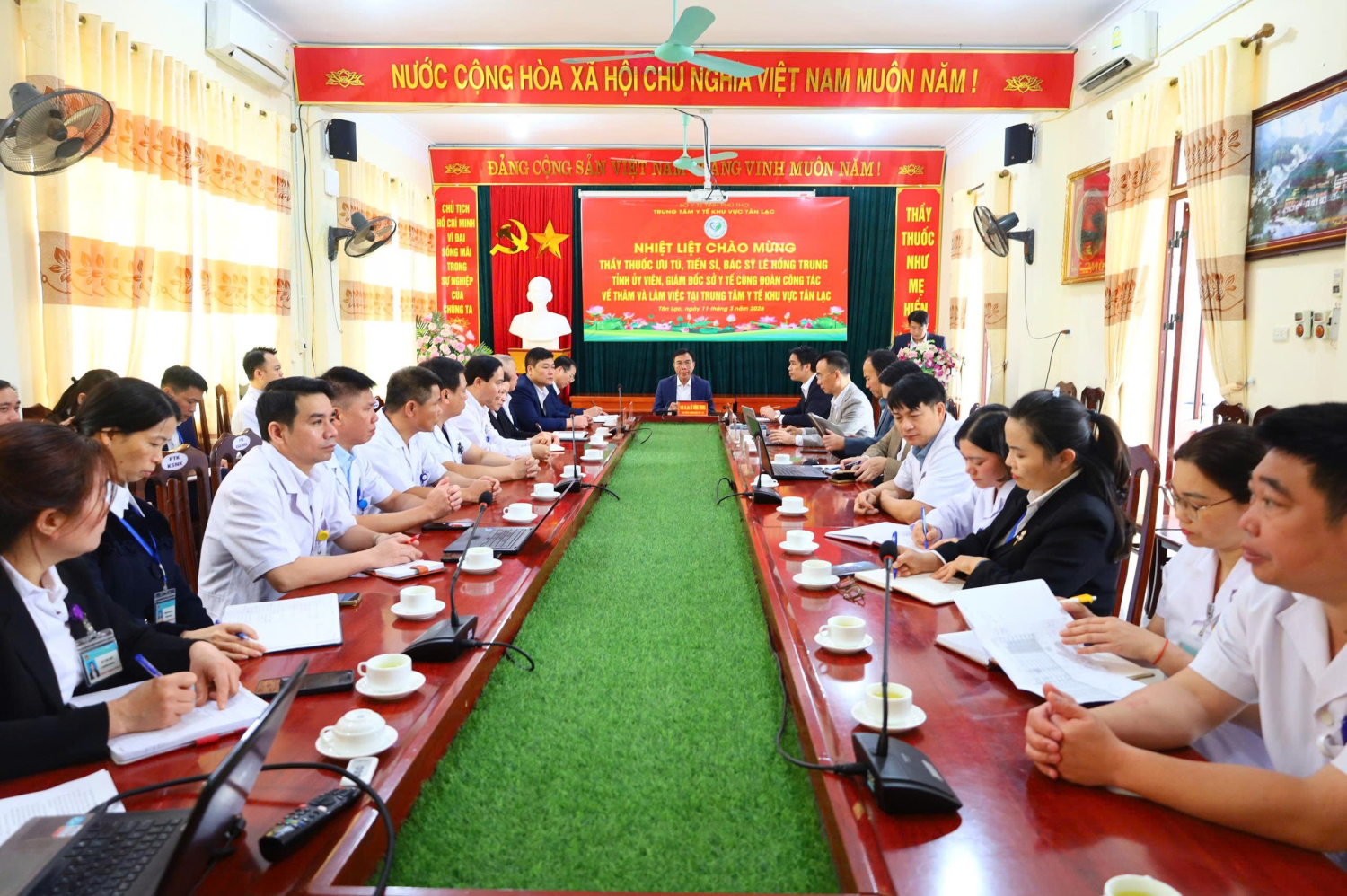 Tham dự buổi làm việc có lãnh đạo các phòng chuyên môn thuộc Sở Y tế, về phía Trung tâm Y tế khu vực Tân Lạc có Ban Giám đốc cùng trưởng, phó các khoa, phòng của đơn vị.