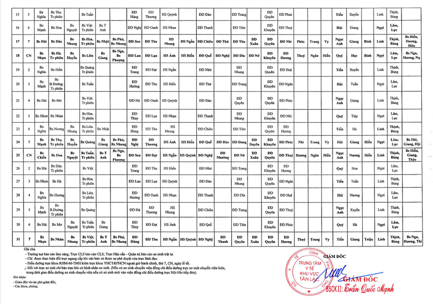 Lịch trực tháng 1.2026