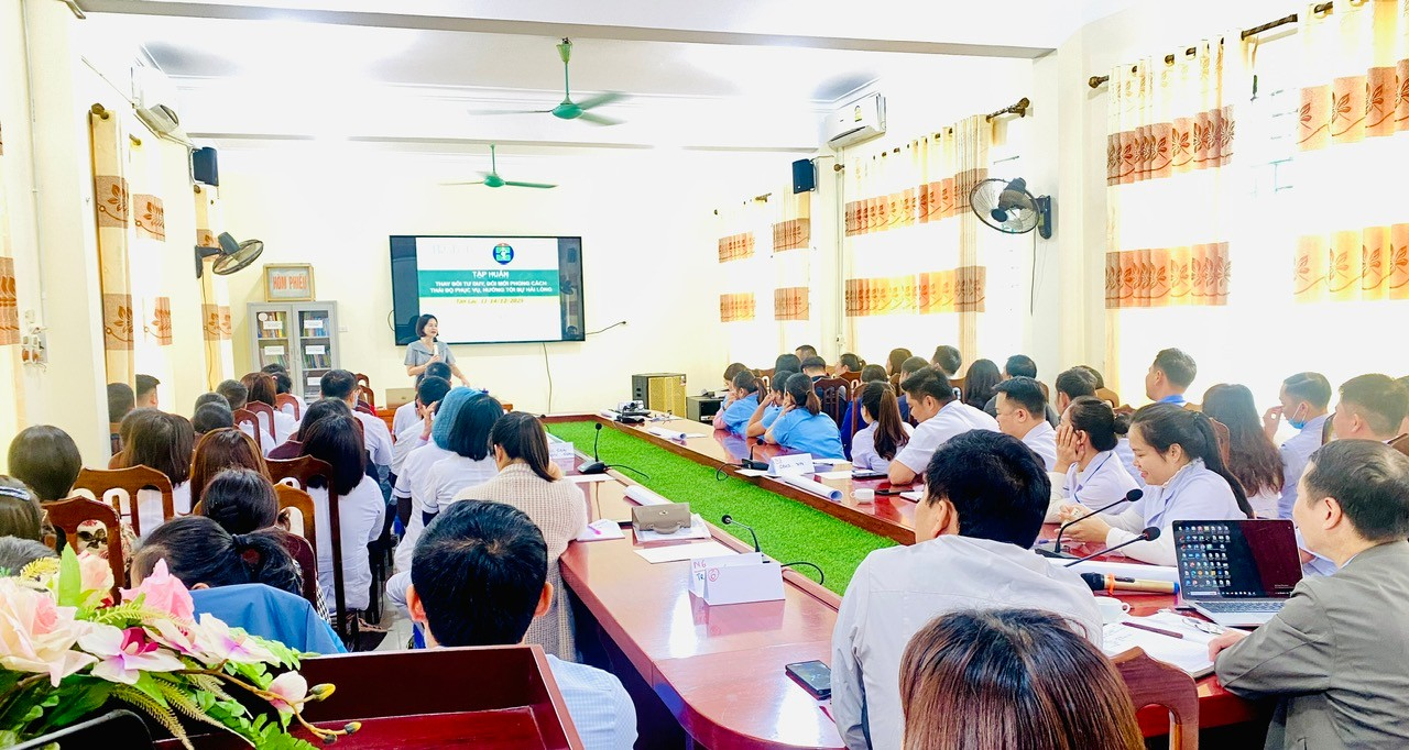 Trong các ngày từ 11 đến 14/12/2025, Trung tâm Y tế khu vực Tân Lạc đã tổ chức tập huấn với chủ đề “Thay đổi tư duy, đổi mới phong cách, thái độ phục vụ, hướng tới sự hài lòng” cho đội ngũ cán bộ, viên chức và người lao động trong toàn đơn vị.