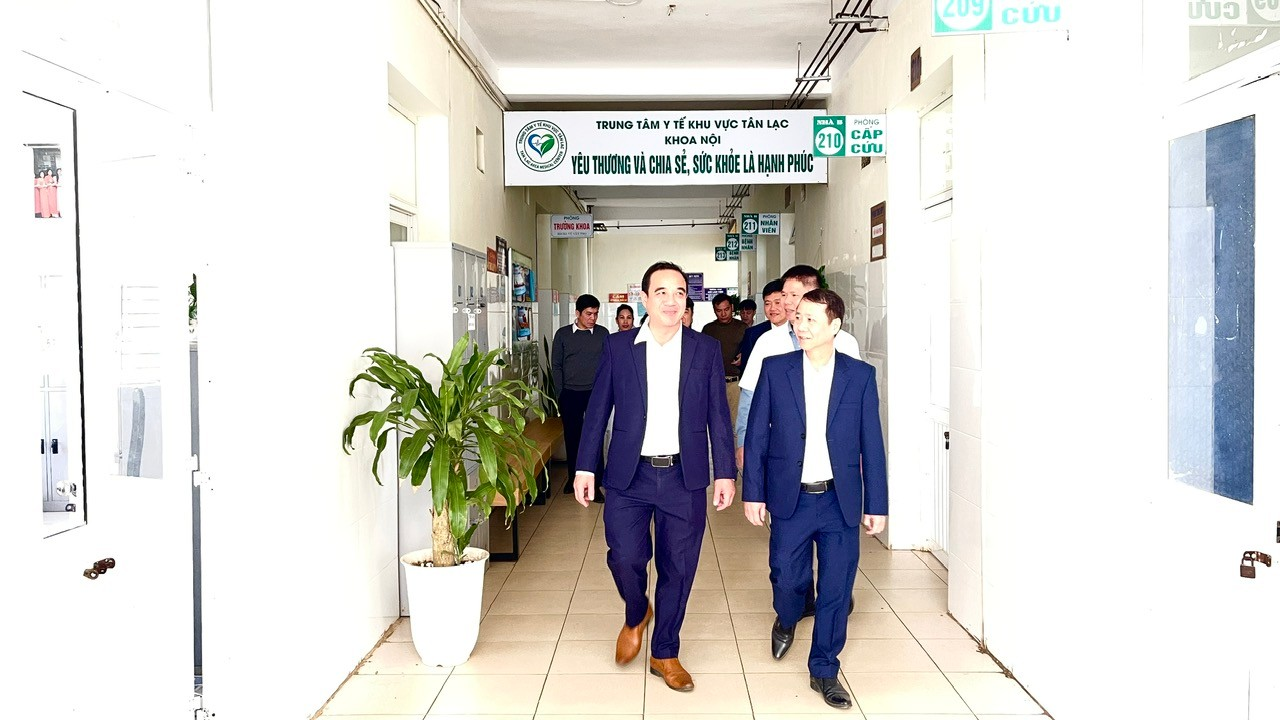 Tiếp và làm việc với đoàn, phía Trung tâm Y tế khu vực Tân Lạc có Thầy thuốc ưu tú, BSCKII Trần Quốc Mạnh - Bí thư Đảng ủy, Giám đốc Trung tâm Y tế, cùng Ban Giám đốc và lãnh đạo các khoa, phòng chức năng của Trung tâm Y tế.