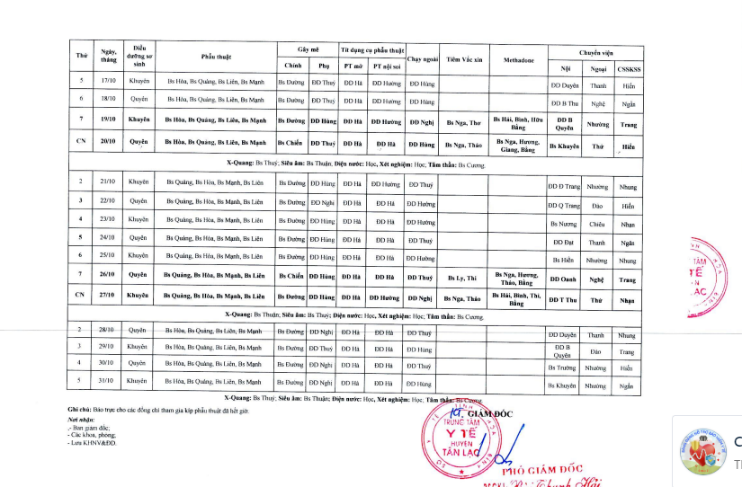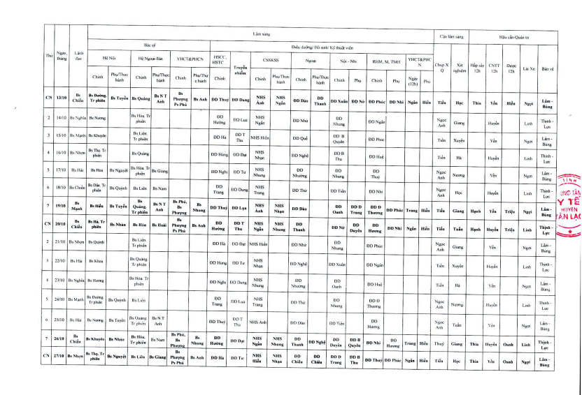 Lịch trực tháng 10.2024