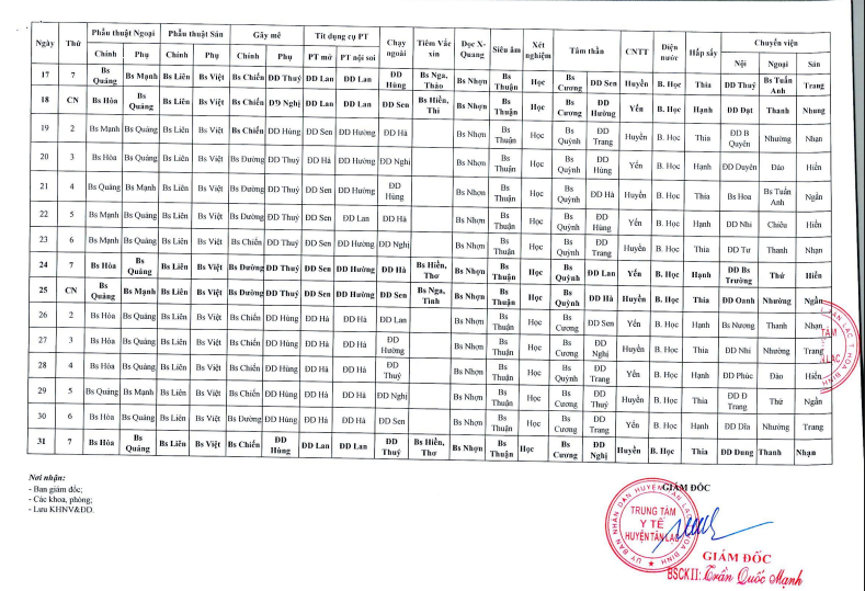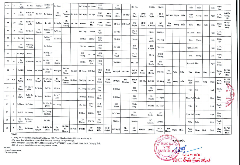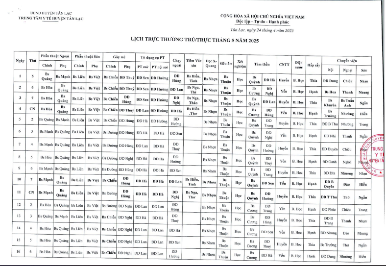 Lịch trực tháng 5.2025