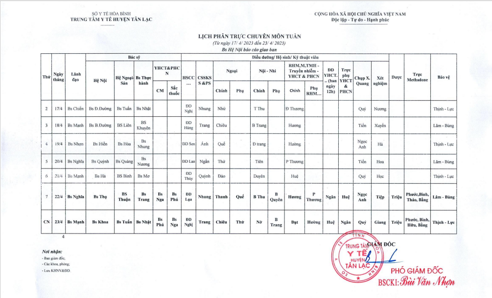 Lịch trực tuần 17/4 - 23/4