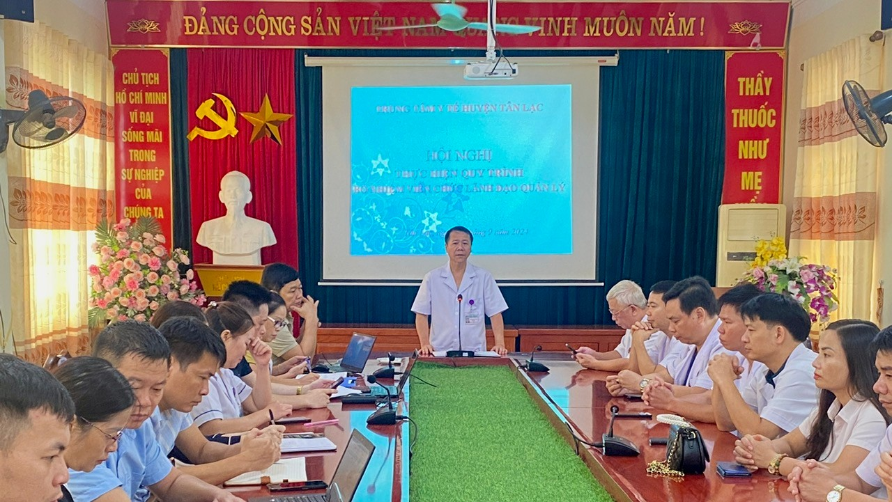Dự và chỉ đạo Hội nghị quy trình 5 bước bầu nhân sự, có Đồng chí Trần Quốc Mạnh - BT Đảng ủy - Giám đốc Trung tâm Y tế huyện Tân Lạc, các Đồng chí trong Ban Giám đốc, Trưởng/ Phó các Khoa phòng, Trưởng trạm Y tế các xã, thị trấn.