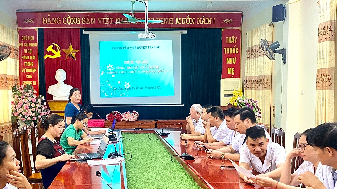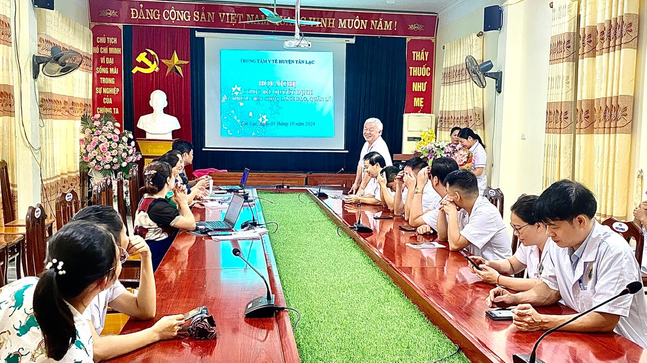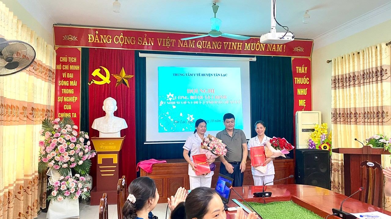 Chiều ngày 01/10/2024, Trung tâm Y tế huyện Tân Lạc đã tổ chức hội nghị công bố Quyết định, bổ nhiệm chức danh Nữ hộ sinh trưởng Khoa CSSKSS và Phụ sản và Điều Dưỡng Trưởng Khoa Nội Trung tâm Y tế.