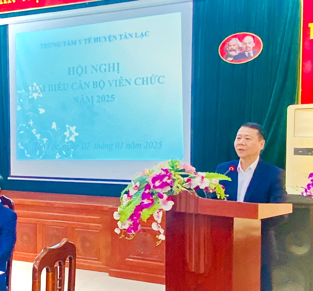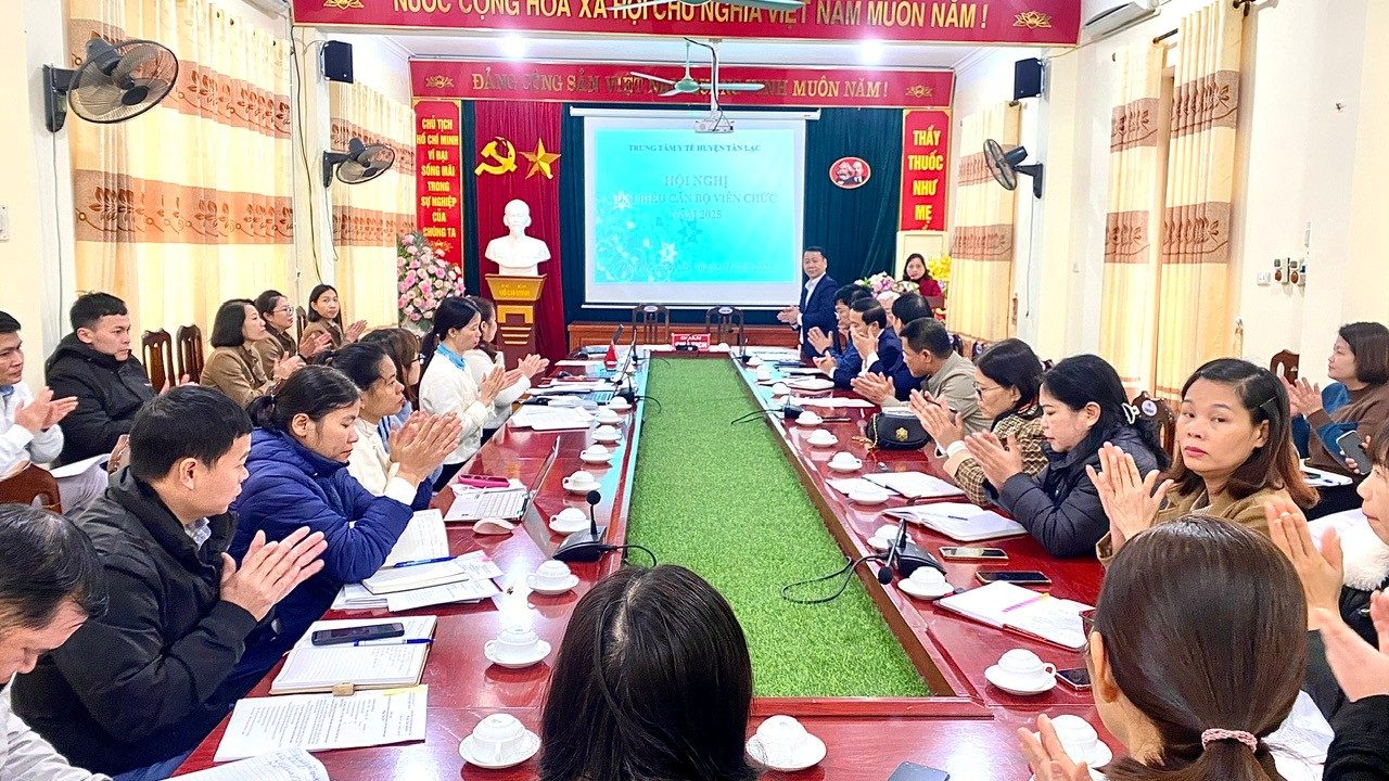 Sáng ngày 07/01/2025, Trung tâm Y tế huyện Tân Lạc đã tổ chức Hội nghị Đại biểu cán bộ viên chức năm 2025, nhằm tổng kết công tác năm 2024 và đề ra phương hướng, nhiệm vụ trọng tâm cho năm 2025.