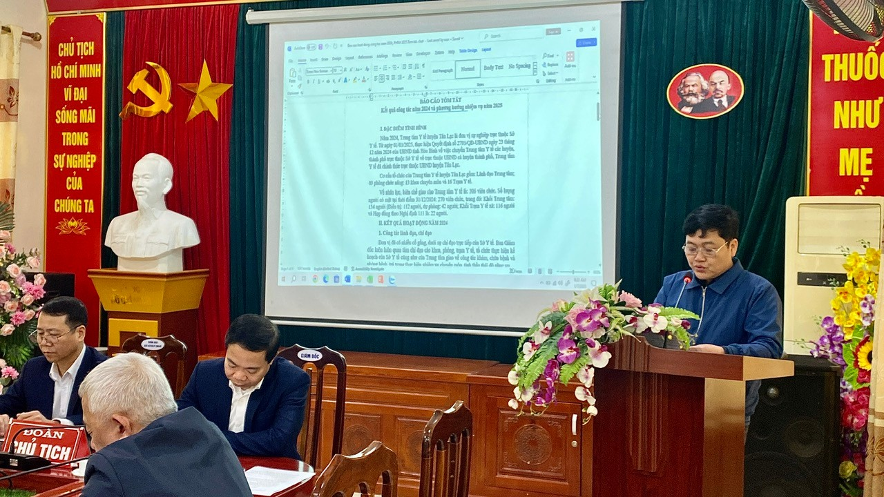 Đồng chí Bùi Thanh Hải - Phó Giám đốc TTYT thông qua báo cáo công tác năm 2024 và phương hướng nhiệm vụ năm 2025