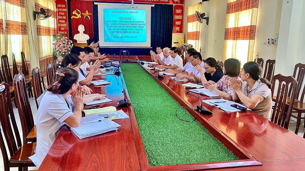 Chiều ngày 16/9/2024, tại hội trường Trung tâm Y tế huyện Tân Lạc, đã diễn ra hội nghị quán triệt và triển khai Kế hoạch số 324-KH/ĐU, ngày 04/9/2024 của Đảng ủy Trung tâm Y tế huyện Tân Lạc về việc tổ chức đại hội các chi bộ trực thuộc, tiến tới Đại hội Đảng bộ Trung tâm Y tế huyện Tân Lạc lần thứ III, nhiệm kỳ 2025 -2030. Dự và chỉ đạo tại Hội nghị có đồng chí Trần Quốc Mạnh, Bí thư Đảng ủy - Giám đốc Trung tâm Y tế, cùng các Đ/c Bí thư các chi bộ trực thuộc.