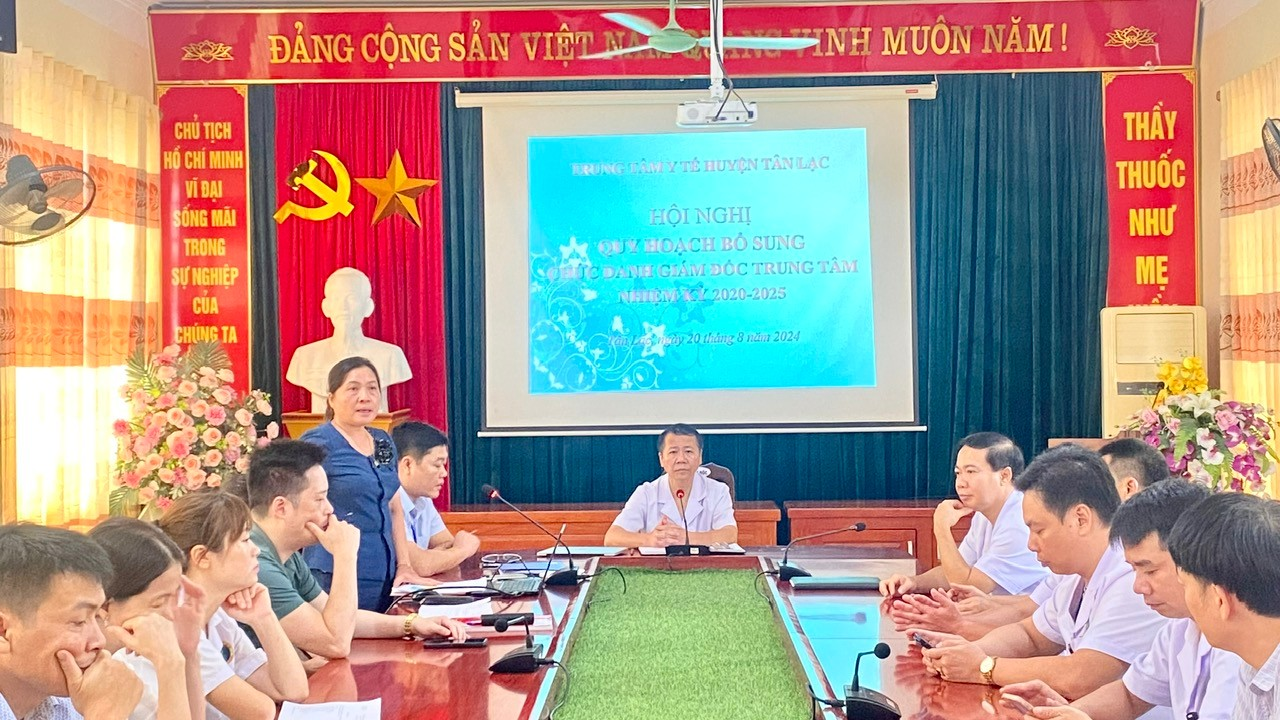 Dự và chỉ đạo hội nghị quy trình 4 bước bầu nhân sự, có Đồng chí Trần Quốc Mạnh - Bí thư Đảng ủy - Giám đốc Trung tâm Y tế huyện Tân Lạc, Các Đồng chí trong Ban Giám đốc, Trưởng/ Phó các Khoa, phòng, Điều dưỡng trưởng, Kỹ thuật viên trưởng, Hộ sinh trưởng và Trưởng/phó trạm Y tế các xã, thị trấn.