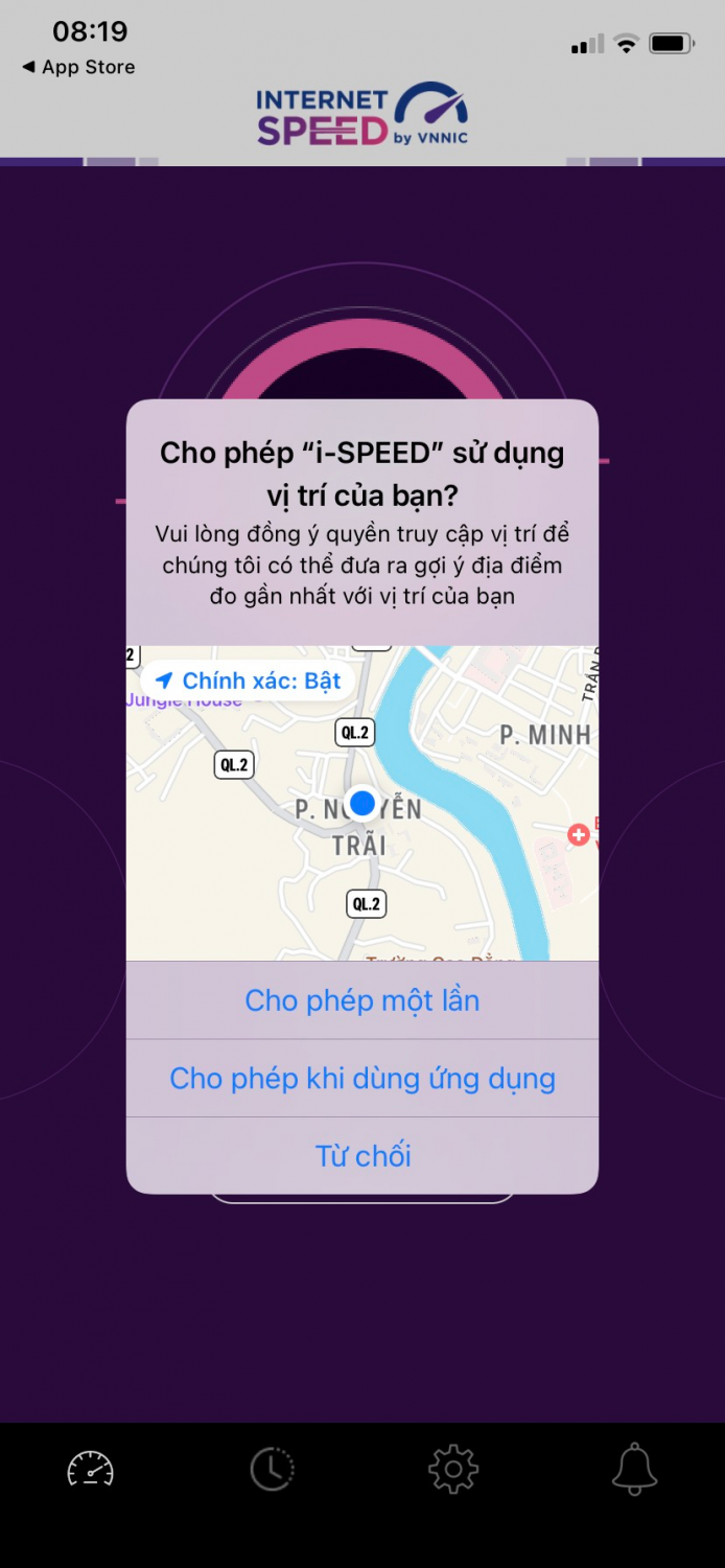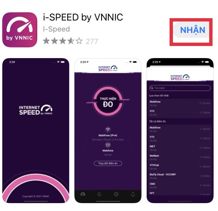 Truy nhập Apple Store Tìm ứng dụng i-Speed by VNNIC; hoặc ứng dụng speedtest vn; ispeed; i-peed Sau đó nhấn nút “NHẬN”