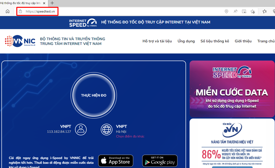 Bước 1: Người dùng sử dụng máy tính truy cập vào địa chỉ https://speedtest.vn/