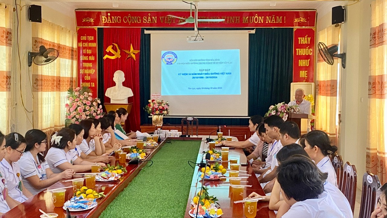 Chiều ngày 26/10/2024, Trung tâm Y tế huyện Tân Lạc tổ chức lễ kỷ niệm 34 năm ngày Điều dưỡng Việt Nam, tôn vinh những đóng góp quan trọng của đội ngũ điều dưỡng viên trong công tác chăm sóc sức khỏe cộng đồng. Lễ kỷ niệm có sự tham gia của đại diện Ban giám đốc Trung tâm Y tế huyện, các cán bộ điều dưỡng và nhân viên y tế.
