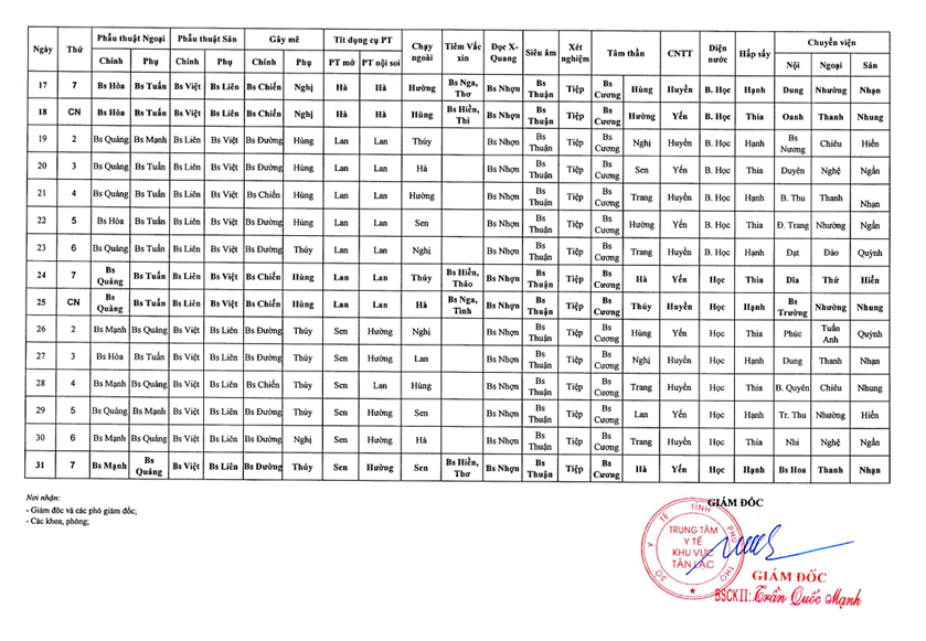 Lịch trực tháng 1.2026