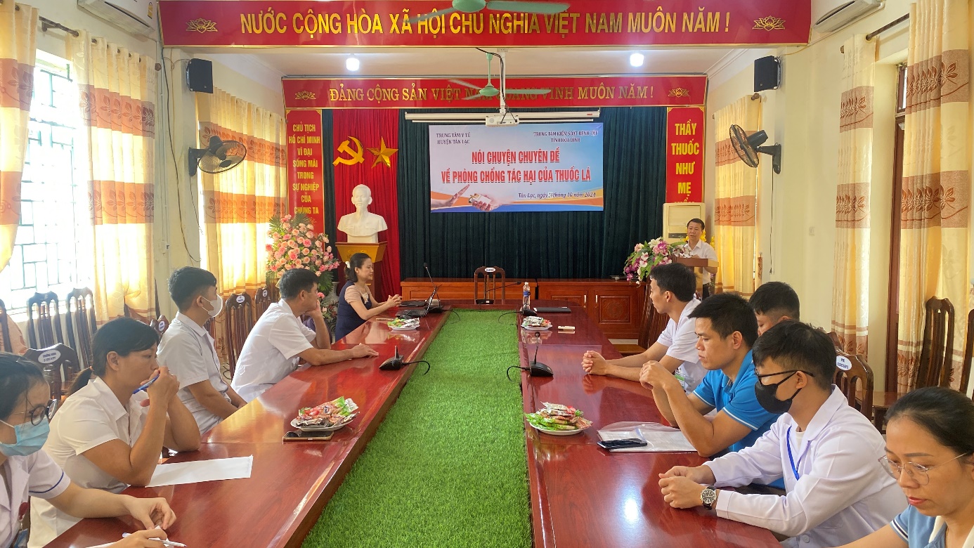 Nhằm nâng cao nhận thức và phổ biến kiến thức về tác hại của thuốc lá đối với sức khỏe cộng đồng, Trung tâm Kiểm soát bệnh tật tỉnh Hòa Bình vừa phối hợp với Trung tâm Y tế huyện Tân Lạc, tổ chức thành công các buổi nói chuyện chuyên đề về phòng chống tác hại của thuốc lá tại Trung tâm Y tế huyện Tân Lạc và các xã Nhân Mỹ, Phong Phú, Thị trấn Mãn Đức.