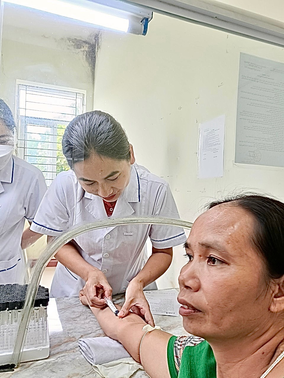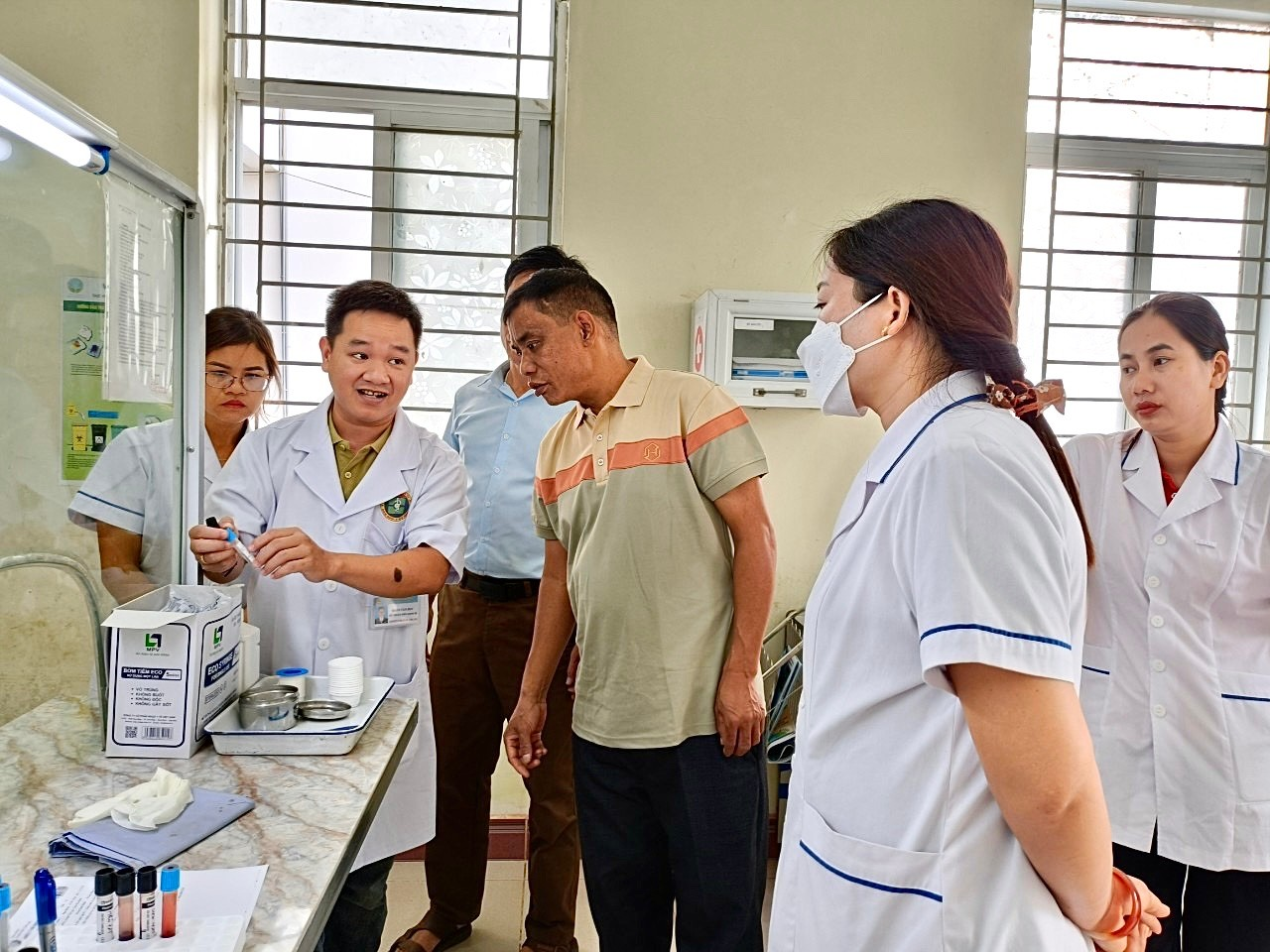 Việc tổ chức thực hành lấy mẫu máu nhằm trang bị kiến thức và kỹ năng cho các Y sĩ, Điều dưỡng và Nữ hộ sinh của TYT xã, thị trấn thuộc Trung tâm Y tế huyện Tân Lạc về cách lấy mẫu máu đúng kỹ thuật và quy trình vận chuyển mẫu đảm bảo chất lượng xét nghiệm.