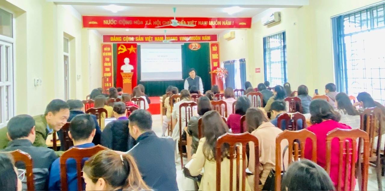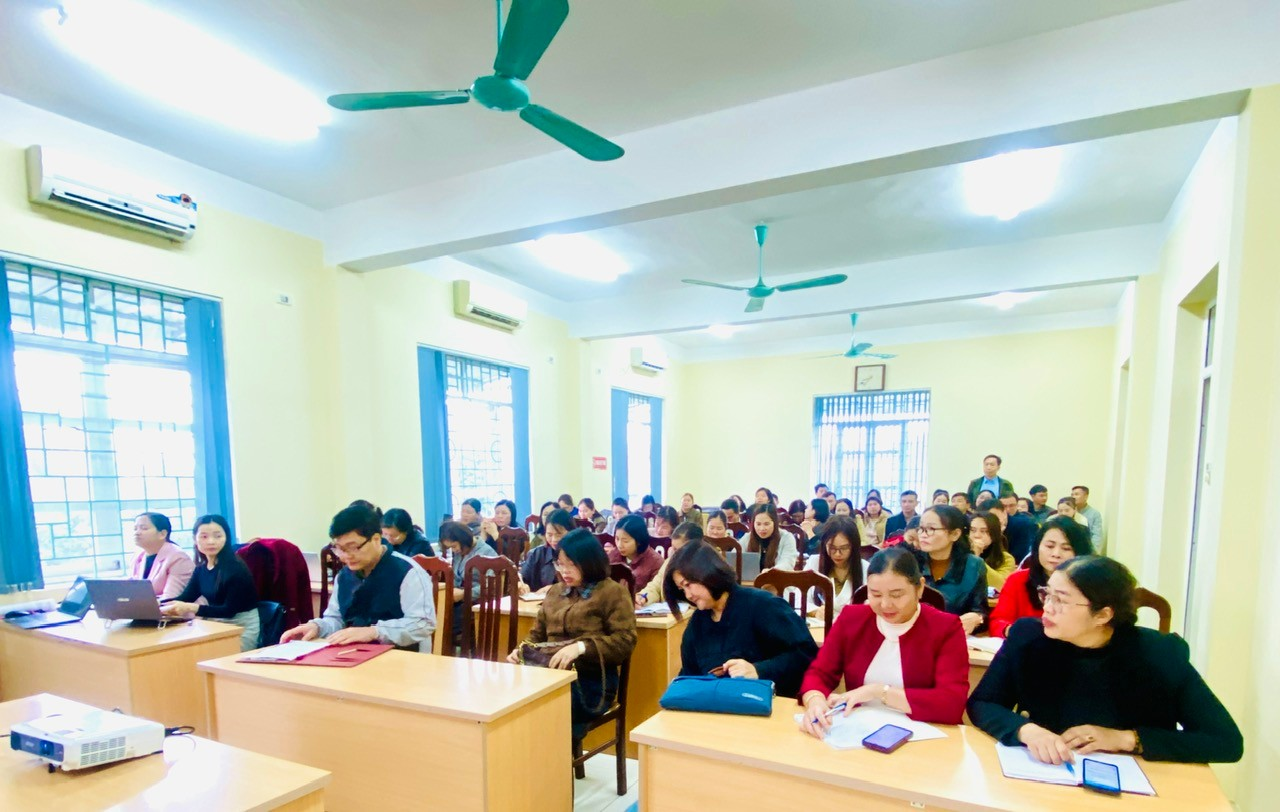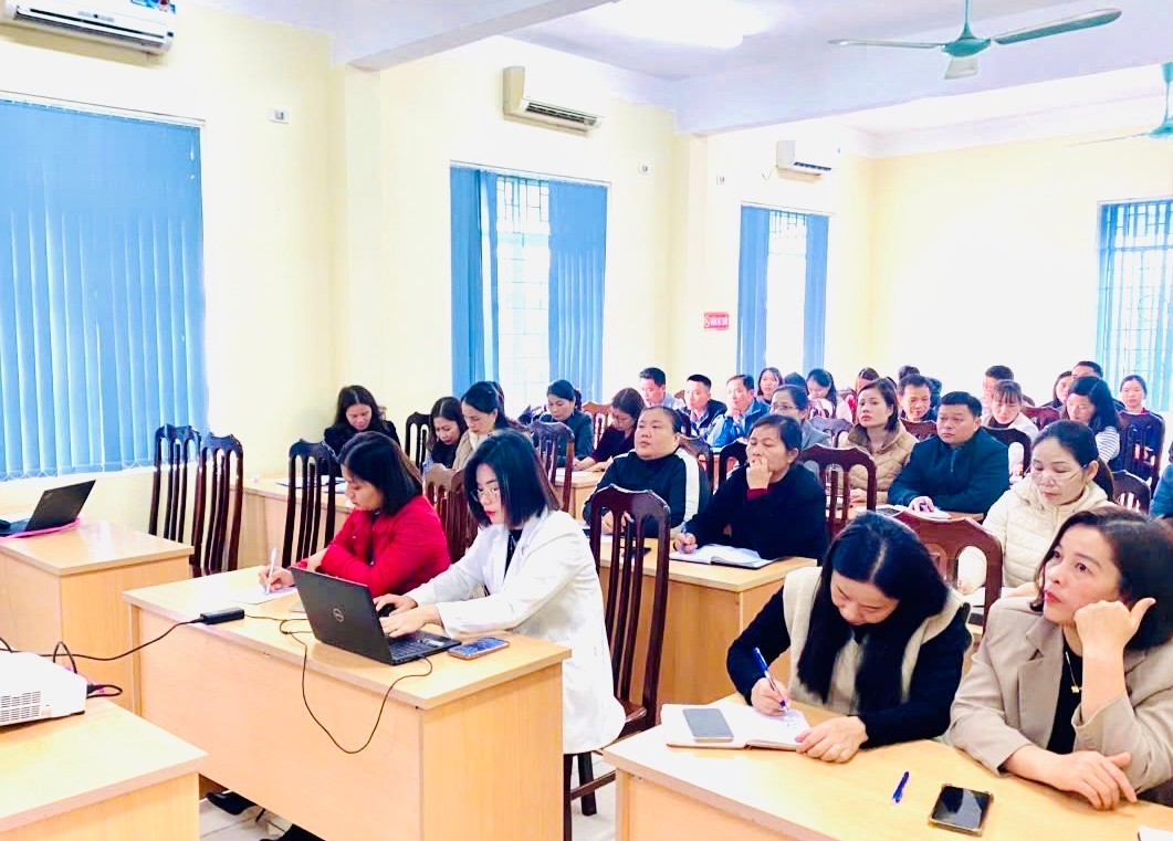 Tham dự buổi tập huấn có đại diện Trung tâm Y tế, Trưởng Trạm Y tế, Hiệu trưởng các Trường TH&THCS và Trường Mầm non, cùng cán bộ chuyên trách tiêm chủng và nhân viên y tế trường học của các xã trên địa bàn.