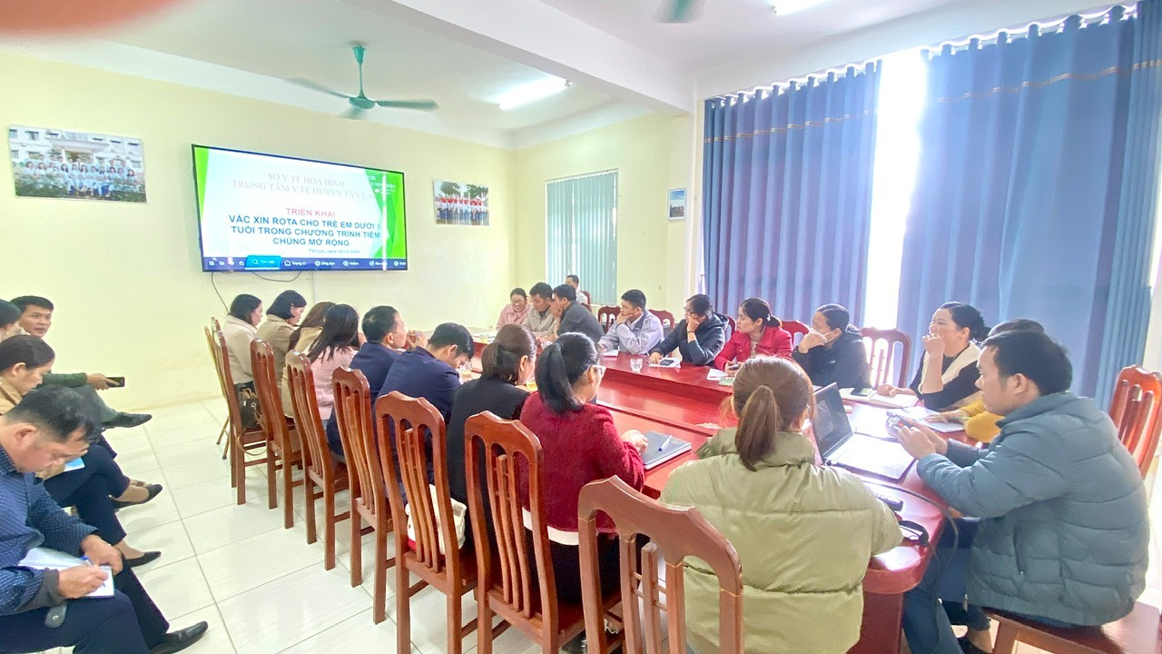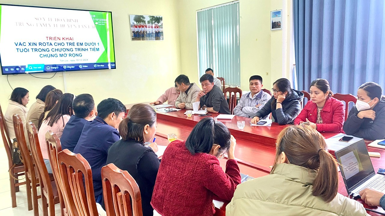 Nhằm đảm bảo triển khai an toàn, hiệu quả vắc xin trên địa bàn huyện. Sáng ngày 10/12/2024 TTYT huyện Tân Lạc đã tổ chức lớp tập huấn triển khai vắc xin Rota cho trẻ em dưới 1 tuổi tới cán bộ Y tế của Trung tâm và chuyên trách tiêm chủng của 16 Trạm Y tế xã, thị trấn.