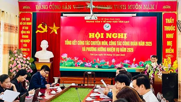 Ngày 24/12, Trung tâm Y tế khu vực Tân Lạc tổ chức Hội nghị tổng kết công tác y tế năm 2025 và triển khai phương hướng, nhiệm vụ năm 2026.
