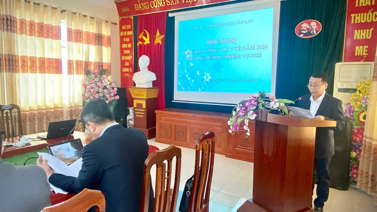 Chiều ngày 07/01/2025, Trung tâm Y tế huyện Tân Lạc long trọngtổ chức Hội nghị tổng kết công tác Y tế, công tác Công đoàn cơ sởnăm 2024, triển khai phương hướng, nhiệm vụ công tác năm 2025.