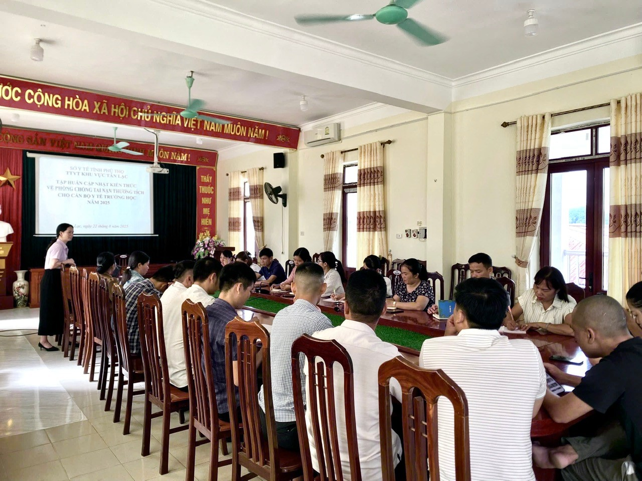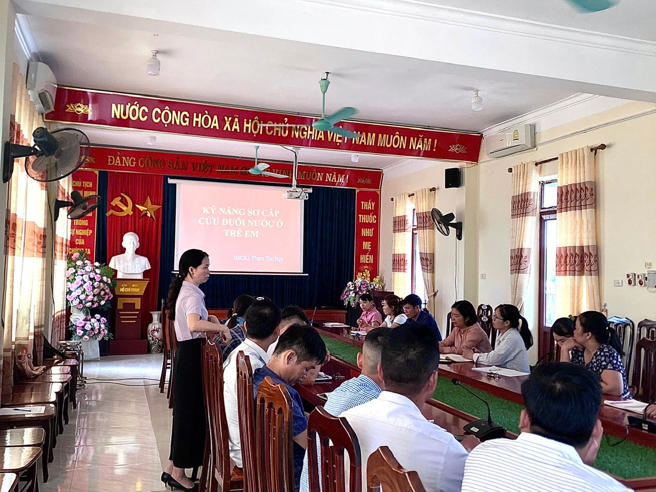 Ngày 22/8/2025, Trung tâm Y tế khu vực Tân Lạc tổ chức lớp tập huấn chuyên đề “Kỹ năng sơ cấp cứu đuối nước ở trẻ em” dành cho cán bộ y tế trường học trên địa bàn. Giảng viên trực tiếp hướng dẫn là BSCKI Phạm Thu Nga.